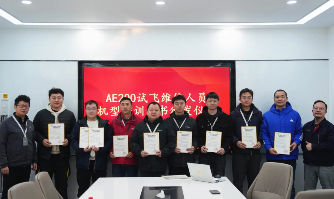 持证上岗!沃飞长空首批AE200系列试飞维修人员机型证书颁发