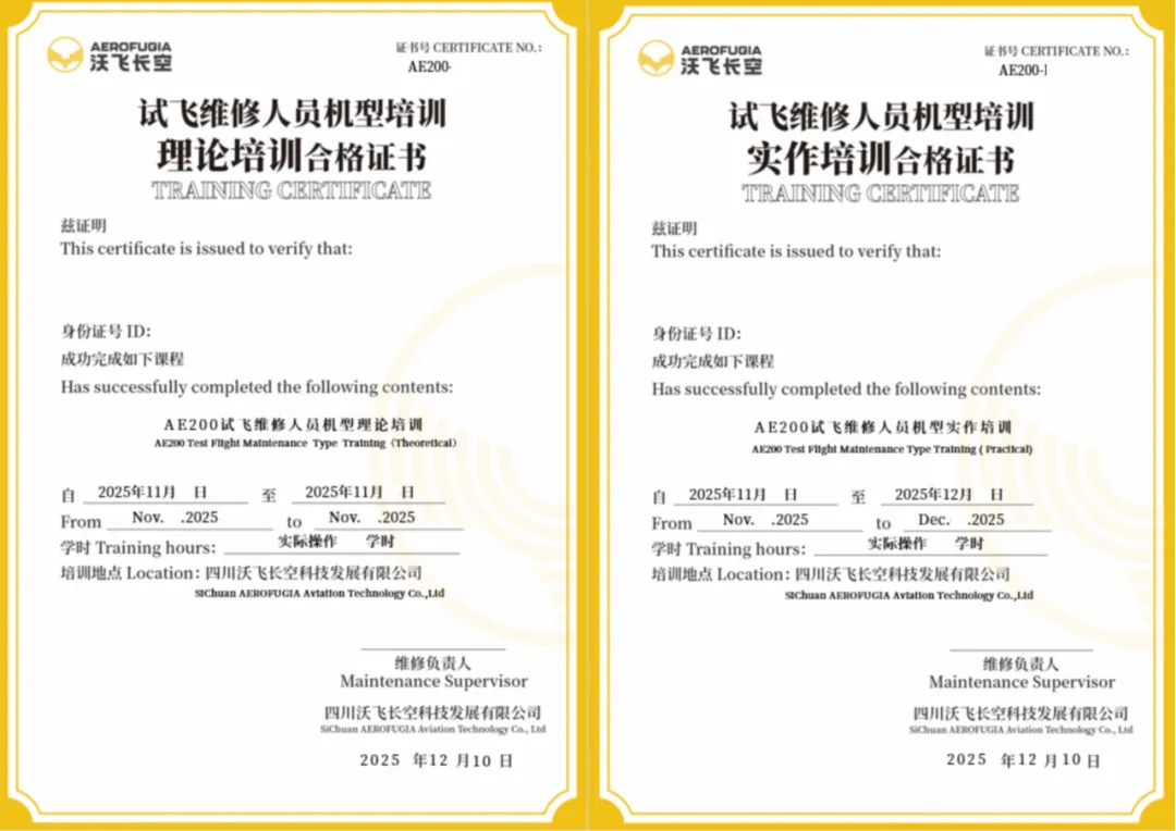 经过培训,首批获证人员将作为沃飞长空科研试飞与运维团队的核心力量,为AE200系列的适航取证和未来商业化运营提供坚实保障。